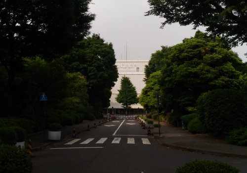 科威特大使館特殊的造型是由日本建築師丹下健三設計,大使館落成於1970年,是日本新現代主義建築的先驅。建築使用清水混凝土作為外牆,由於上層有微妙的漂浮感而有天空之城的別稱。我們去時發現外牆水漬嚴重(這是清水混凝土外牆最大的敵人),缺乏維護,事後查詢時發現大使館已因311大地震後的防震檢查未通過而準備進行改建工程,也許會如東京車站或慶應大學的舊圖書館一樣在其下方加上免震結構,但不像前述那些文化財的這座大使館也有可能就此消失;看見它並非像我們造訪的許多地方正在進行大規模整修也許算是某種幸運。