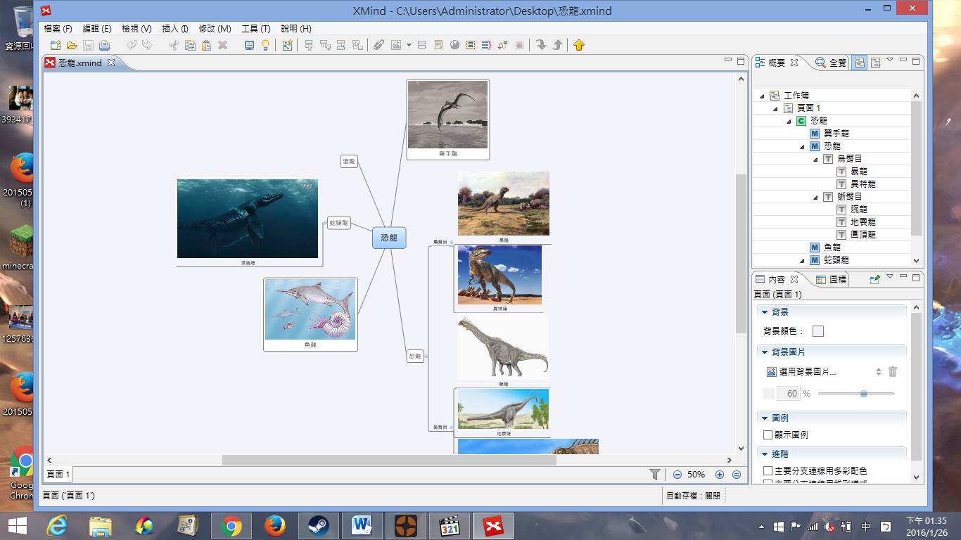 目前2016年1月26日 (二) 13:40於 2016年1月26日 (二) 13:40 版本的縮圖1,366 × 768(106 KB)李彥廷留言 | 貢獻心智圖:恐龍